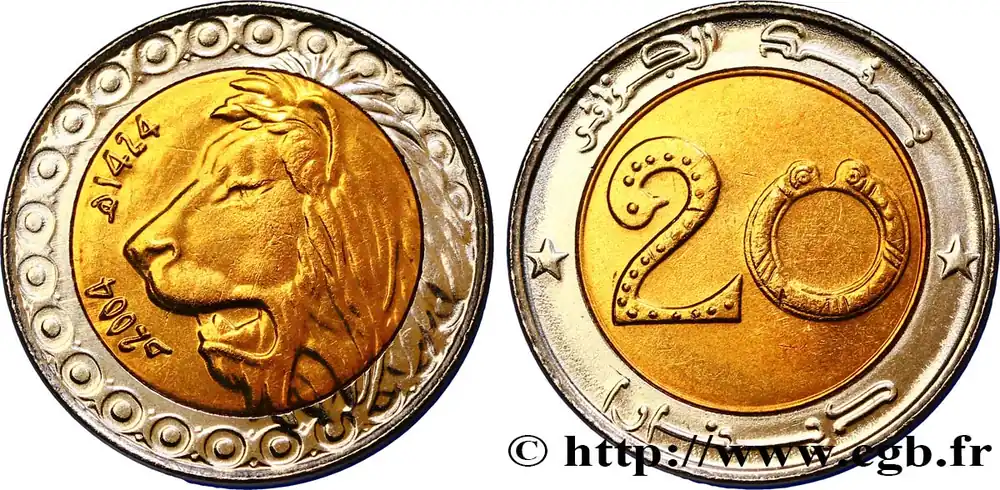 ALGÉRIE 20 Dinars tête de lion an 1424 2004 fwo_714341 Monde Pas Cher