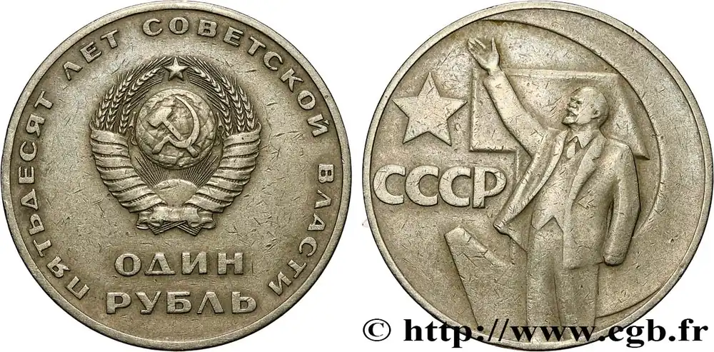 Affaire À Saisir RUSSIE – URSS 1 Rouble 50e anniversaire de la révolution d’Octobre : emblème / Lénine 1967 fwo_776152 Monde