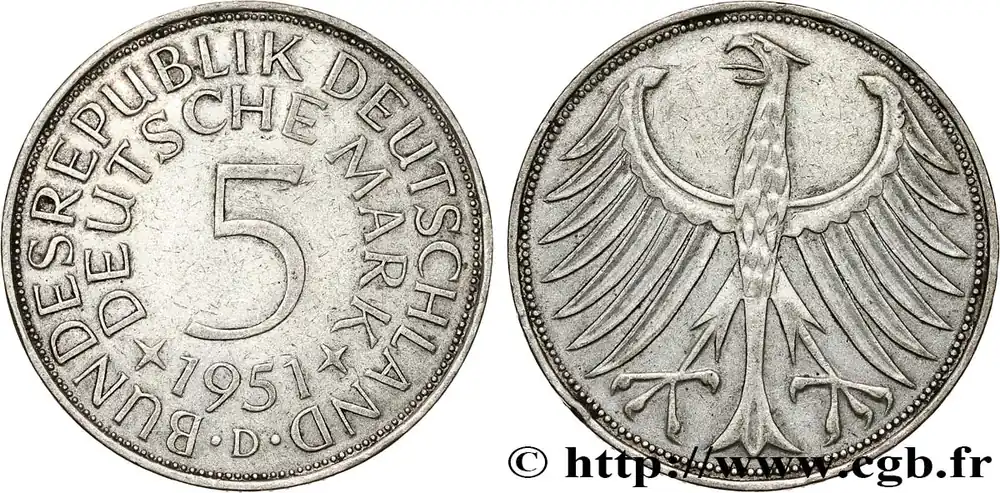 ALLEMAGNE 5 Mark aigle 1951 Munich fwo_788110 Monde Livraison Gratuite