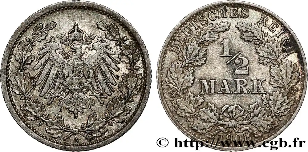 ALLEMAGNE 1/2 Mark Empire aigle impérial 1908 Berlin fwo_788368 Monde Super Prix