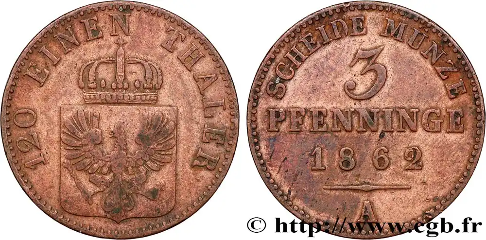 ALLEMAGNE – PRUSSE 3 Pfenninge Royaume de Prusse 1862 Berlin fwo_789729 Monde Paiement Sécurisé