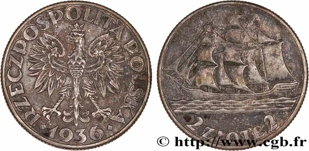 Solde POLOGNE 2 Zlote 15e anniversaire du port de Gdynia 1936 Varsovie fwo_777279 Monde