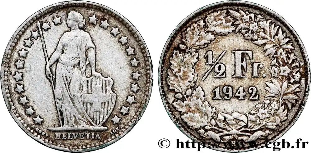 SUISSE 1/2 Franc Helvetia 1942 Berne fwo_780248 Monde Quantité Limitée