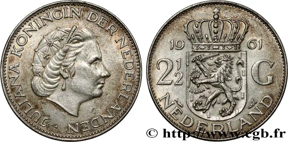Satisfait Ou Remboursé PAYS-BAS 2 1/2 Gulden Juliana 1961 Utrecht fwo_787887 Monde