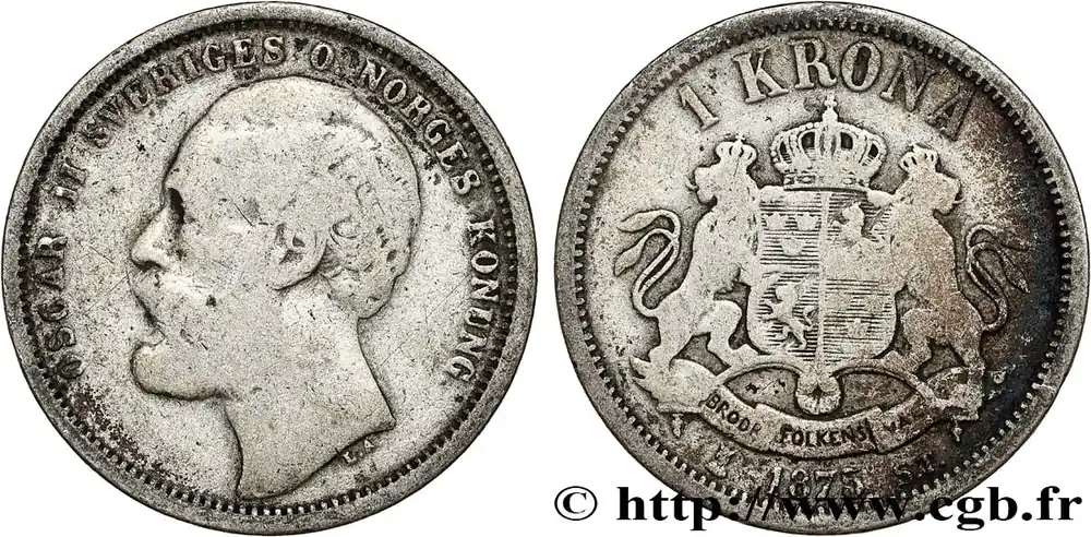 SUÈDE 1 Krona Oscar II 1875 fwo_788103 Monde Usine Directe
