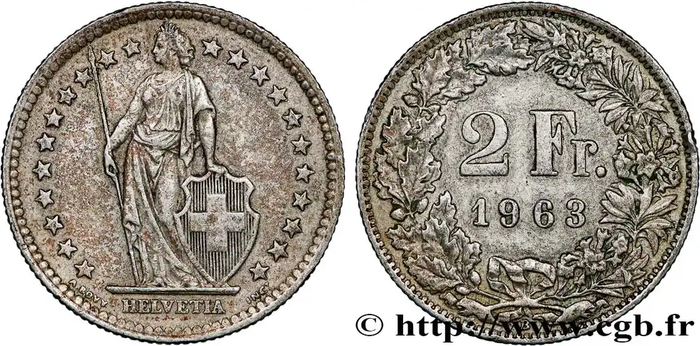SUISSE 2 Francs Helvetia 1963 Berne fwo_793281 Monde Top Vente
