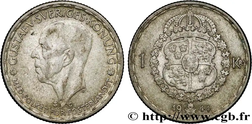 SUÈDE 1 Krona Gustave V 1944 fwo_793283 Monde Exclusif
