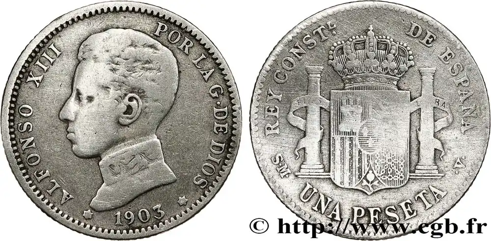 Certifié ESPAGNE 1 Peseta Alphonse XIII 4e type de buste 1903 Madrid fwo_789000 Monde