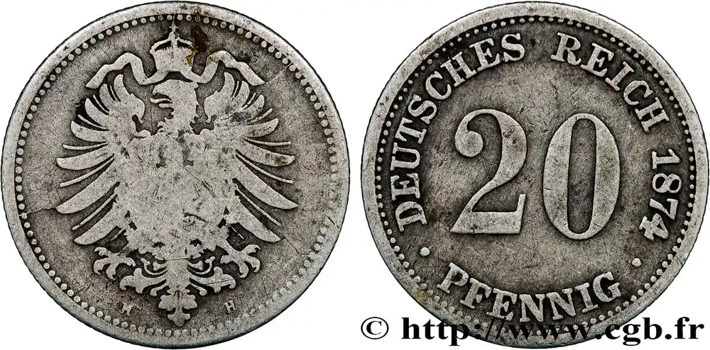 Commander Maintenant ALLEMAGNE 20 Pfennig aigle impérial héraldique 1874 Darmstadt fwo_793347 Monde