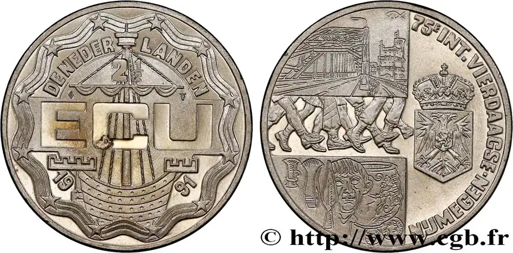 Retour Gratuit PAYS-BAS 2 1/2 Ecu Proof 75e anniversaire de la marche de quatre jours de Nimègue 1991 fwo_733110 Monde