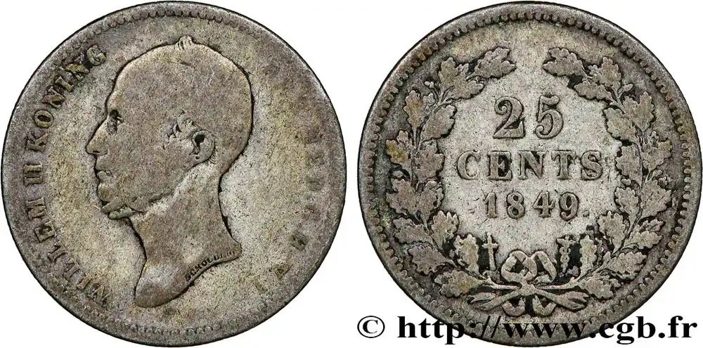 PAYS-BAS 25 Cents Guillaume II 1849 Utrecht fwo_789988 Monde Authentique