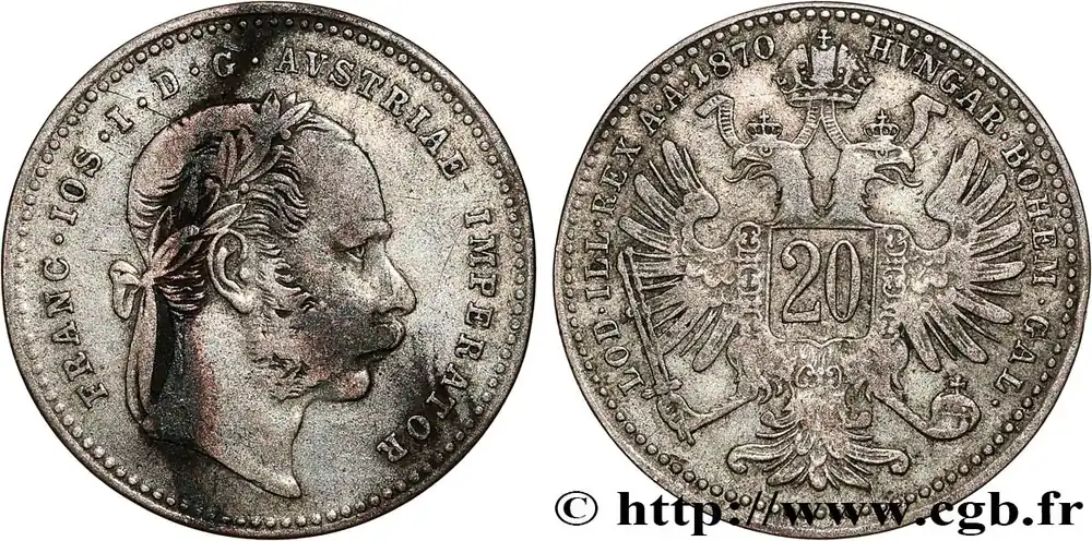 Meilleure Qualité AUTRICHE 20 Kreuzer Empereur François-Joseph Ier tête laurée / aigle bicéphale 1870 Vienne fwo_788172 Monde