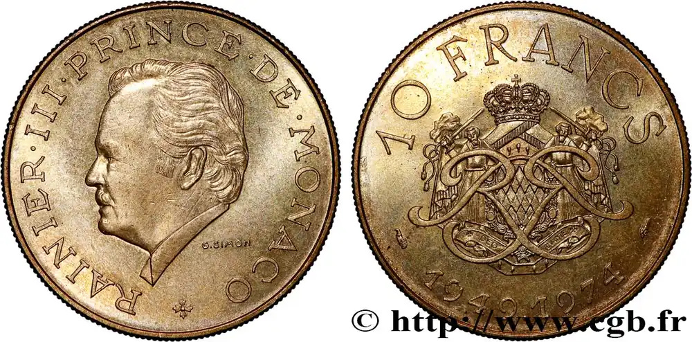 MONACO 10 Francs 25e anniversaire du règne de Rainier III 1974 Paris fwo_799216 Monde Meilleur Prix