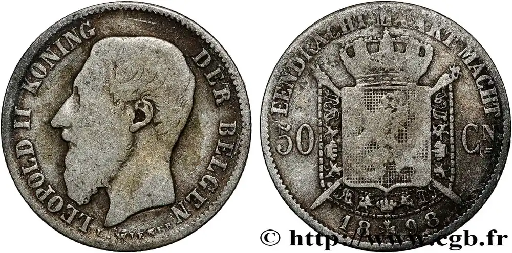 BELGIQUE 50 Centiemen (Centimes) Léopold II légende flamande 1898 fwo_804120 Monde Meilleure Qualité