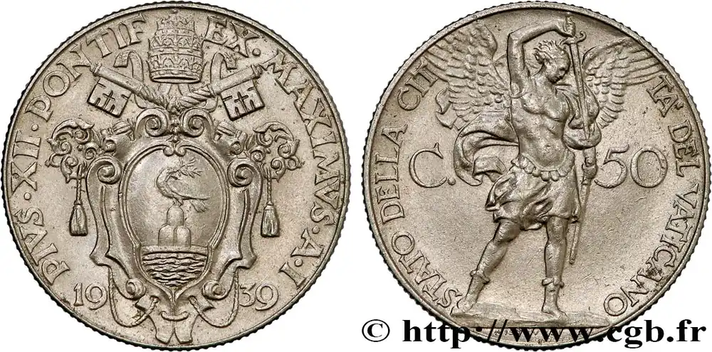 Certifié VATICAN ET ÉTATS PONTIFICAUX 50 Centesimi Pie XII an I 1939 Rome fwo_801967 Monde