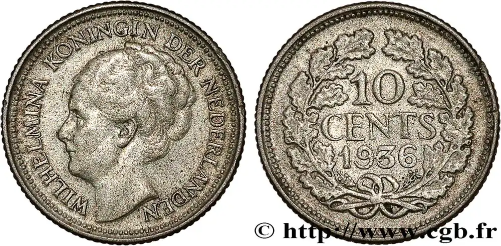 Bon Plan PAYS-BAS 10 Cents Reine Wilhelmine 1936 Utrecht fwo_788180 Monde
