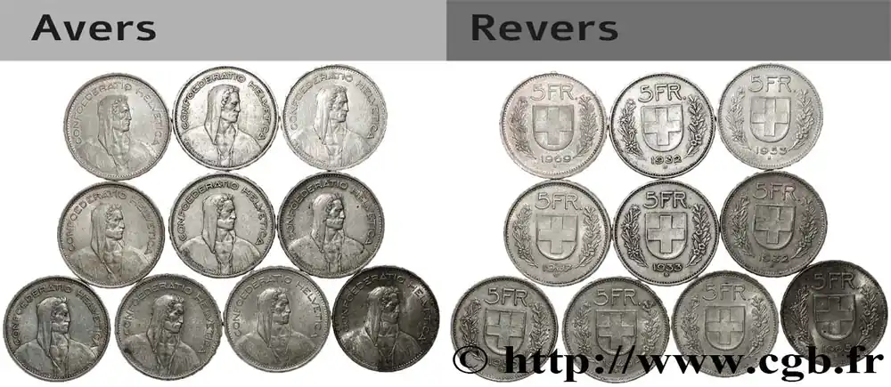 ARGENT D’INVESTISSEMENT Lot de 10 x 5 Francs Berger des alpes n.d. Berne fwo_807121 Monde Livraison Gratuite
