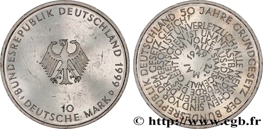 ALLEMAGNE 10 Mark aigle héraldique / 50e anniversaire de la fondation de la République Fédérale d’Allemagne 1999 Munich – D fwo_807534 Monde Meilleure Vente