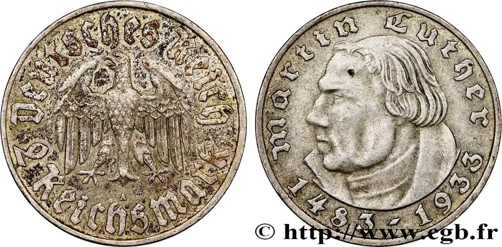 ALLEMAGNE 2 Reichsmark Martin Luther 1933 Berlin fwo_810486 Monde Produit De Marque