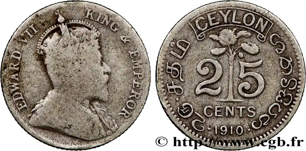 Achat Immédiat CEYLAN 25 Cents Édouard VII 1910 fwo_812488 Monde