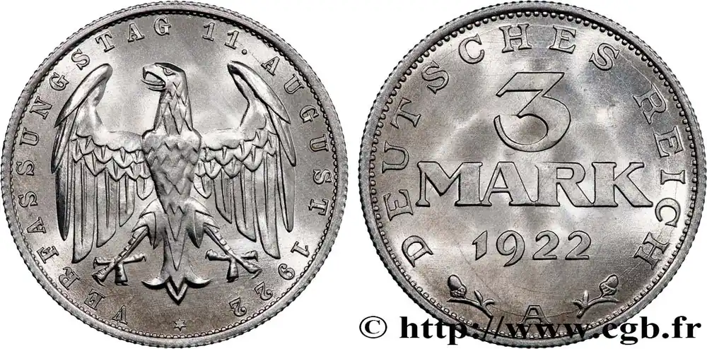 ALLEMAGNE 3 Mark Jour de la Constitution 1922 Berlin fwo_812975 Monde Livraison Express