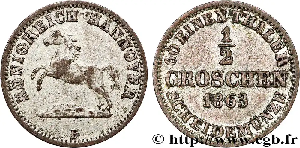ALLEMAGNE – HANOVRE 1/2 Groschen Royaume de Hanovre 1863 Hanovre fwo_813039 Monde Dernier Modèle