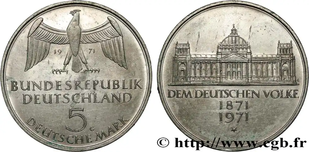 Usine Directe ALLEMAGNE 5 Mark Centenaire du parlement allemand 1971 Karlsruhe fwo_807920 Monde