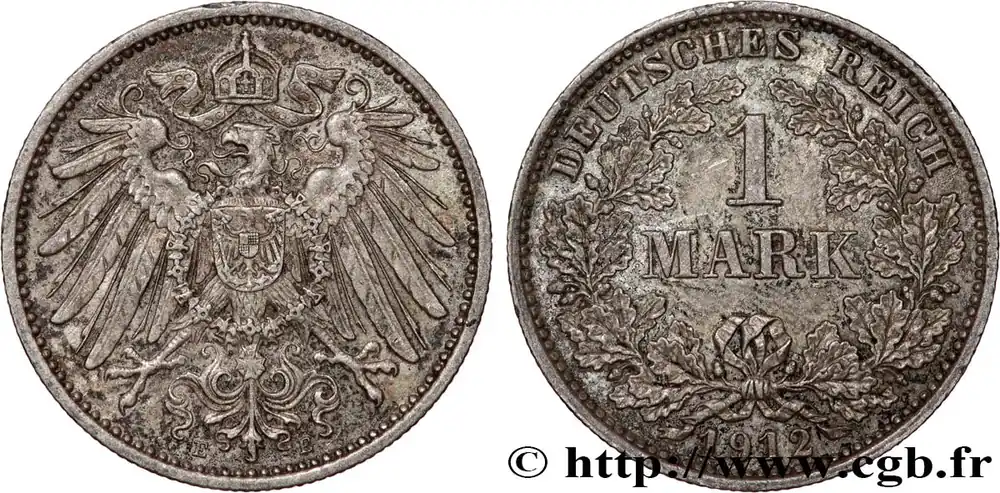 Vente Directe ALLEMAGNE 1 Mark Empire aigle impérial 2e type 1912 Muldenhütten – E fwo_808387 Monde