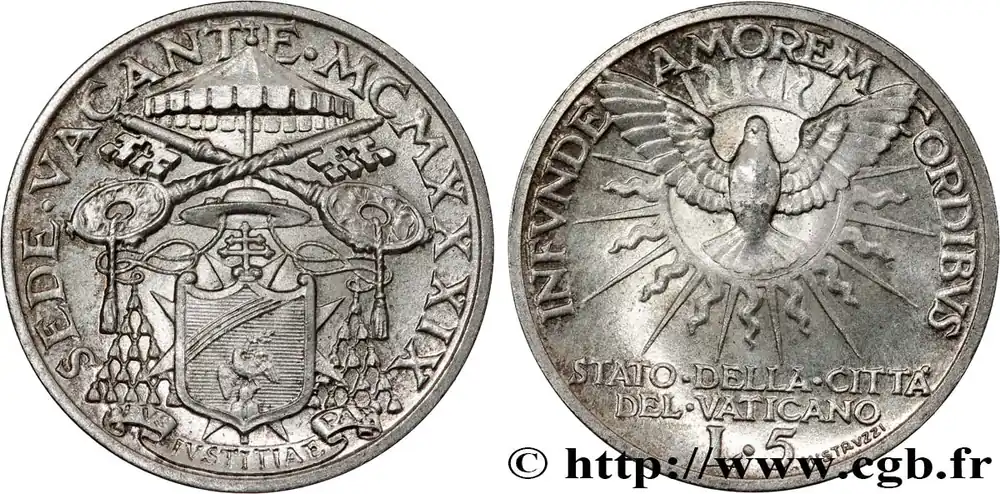 VATICAN ET ÉTATS PONTIFICAUX 5 Lire Sede Vacante 1939 Rome fwo_808924 Monde Solde