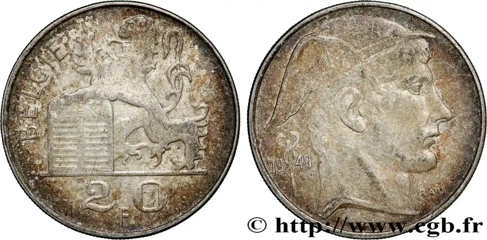 BELGIQUE 20 Francs Mercure, légende flamande 1949 fwo_789943 Monde Marque