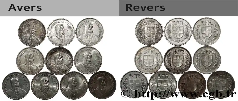 ARGENT D’INVESTISSEMENT Lot de 10 x 5 Francs Berger des alpes n.d. Berne fwo_807123 Monde Livraison Mondiale