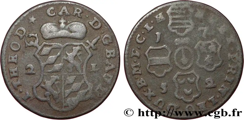 Offre Du Jour BELGIQUE – PRINCIPAUTÉ ÉPISCOPALE DE LIÈGE 2 Liards Évéché de Liège frappe au nom de Jean-Théodore de Bavière 1752 fwo_808871 Monde