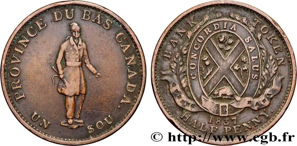 Paiement Sécurisé CANADA 1 Sou (1/2 Penny) Province du Bas Canada, Québec 1837 Boulton & Watt fwo_818092 Monde