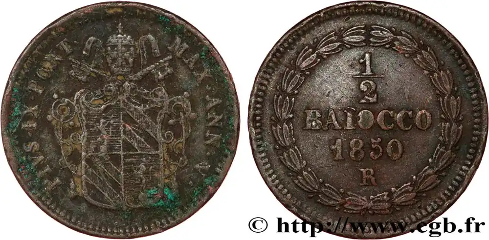 Marque VATICAN ET ÉTATS PONTIFICAUX 1/2 Baiocco Pie IX an V 1850 Rome fwo_808726 Monde