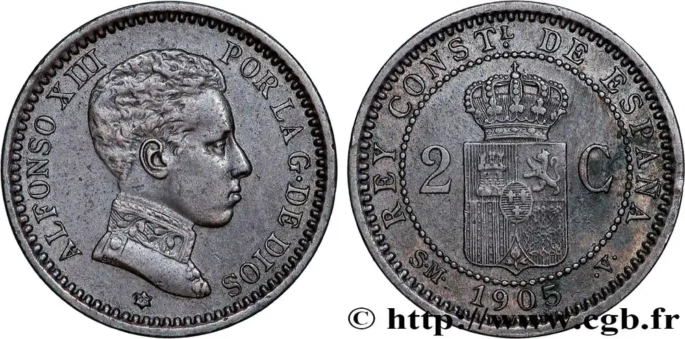 ESPAGNE 2 Centimos Alphonse XIII 1905 Madrid fwo_821703 Monde Commander Vite