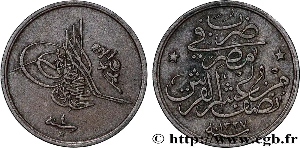 ÉGYPTE 1/20 Qirsh Muhammad V Ah1327 an 4 (1912) Heaton fwo_821716 Monde Tendance