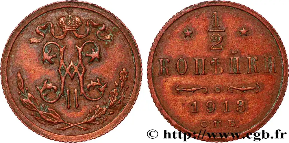 RUSSIE 1/2 Kopeck Nicolas II 1913 Saint-Petersbourg fwo_808990 Monde Remise