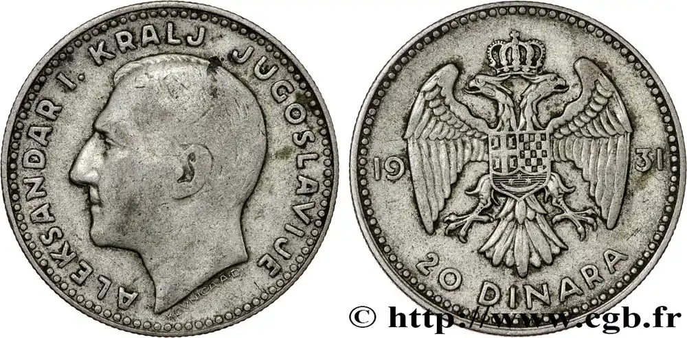 Retour Gratuit YOUGOSLAVIE 20 Dinara Alexandre Ier / aigle bicéphale 1931 Belgrade fwo_814584 Monde