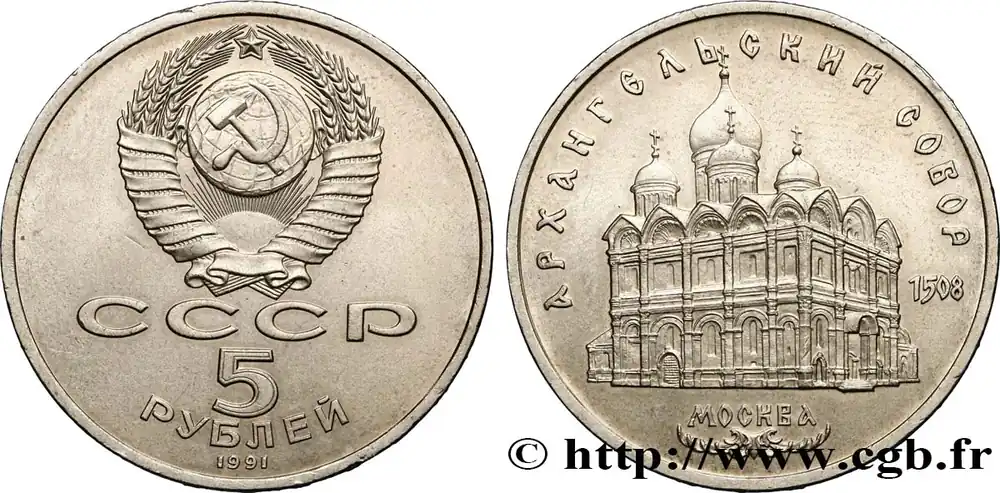 RUSSIE – URSS 5 Roubles Moscou : la cathédrale de l’Archange Michel 1991 fwo_819297 Monde Bon Marché