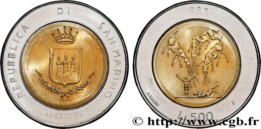 SAINT-MARIN 500 Lire La peur de la guerre nucléaire 1983 Rome – R fwo_820956 Monde Commander Maintenant