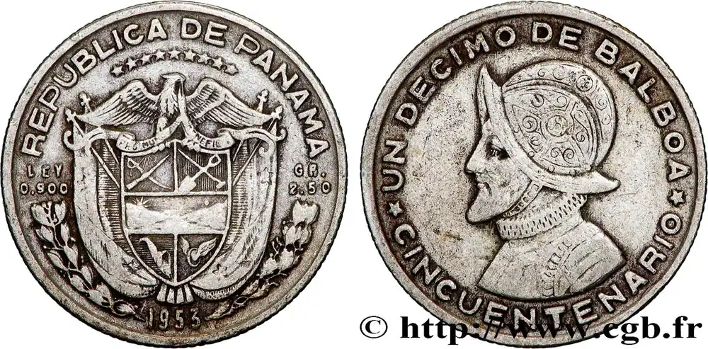 PANAMA 1/10 (Decimo) Balboa Vasco Nunez de Balboa 1953 fwo_815679 Monde Artisanat