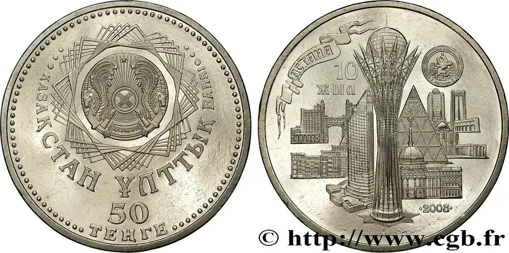 Offre Du Jour KAZAKHSTAN 50 Tenge Emblème national / 10e anniversaire de la capitale Astana 2008 fwo_818964 Monde