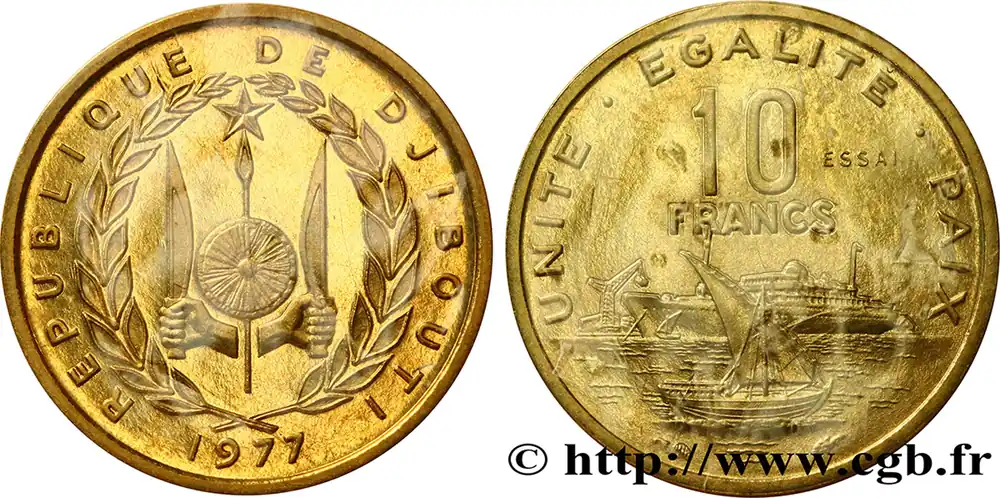 Dernière Chance DJIBOUTI Essai de 10 Francs voilier traditionnel et paquebot 1977 Paris fwo_775900 Monde