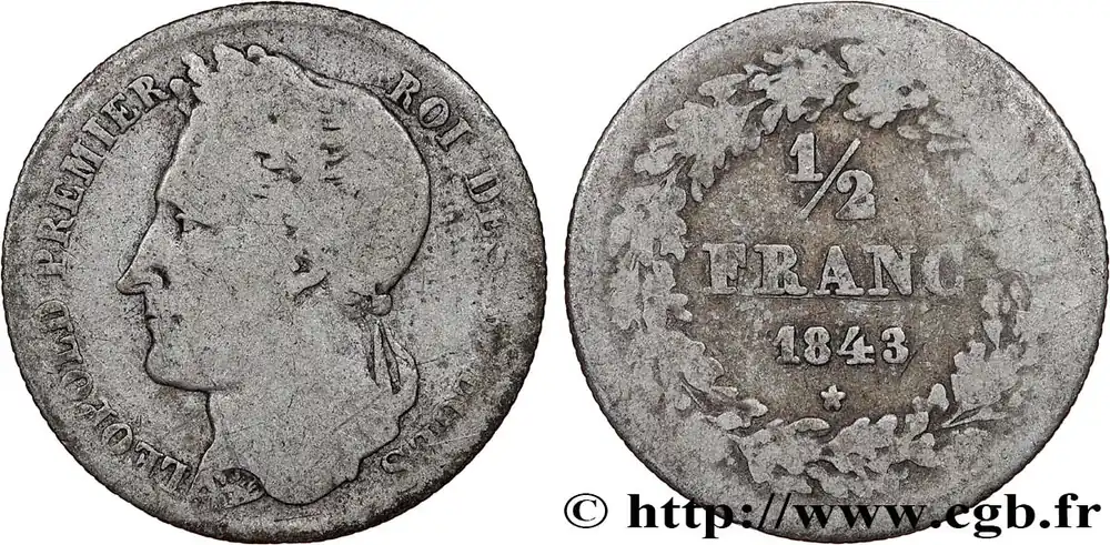 En Vogue BELGIQUE 1/2 Franc Léopold tête laurée 1843 fwo_793805 Monde