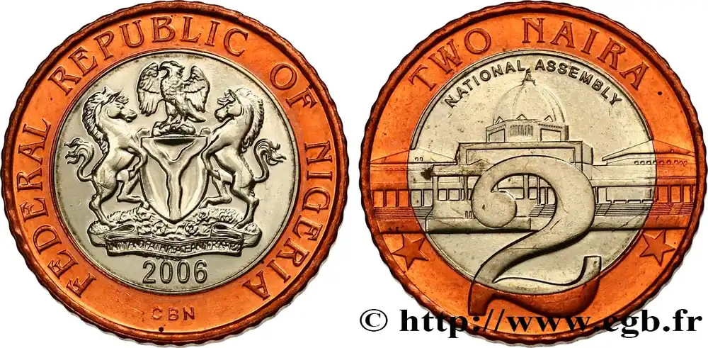 NIGERIA 2 Naira emblème / bâtiment de l’assemblée nationale à Abuja 2006 British Royal Mint fwo_817280 Monde Prix Bas