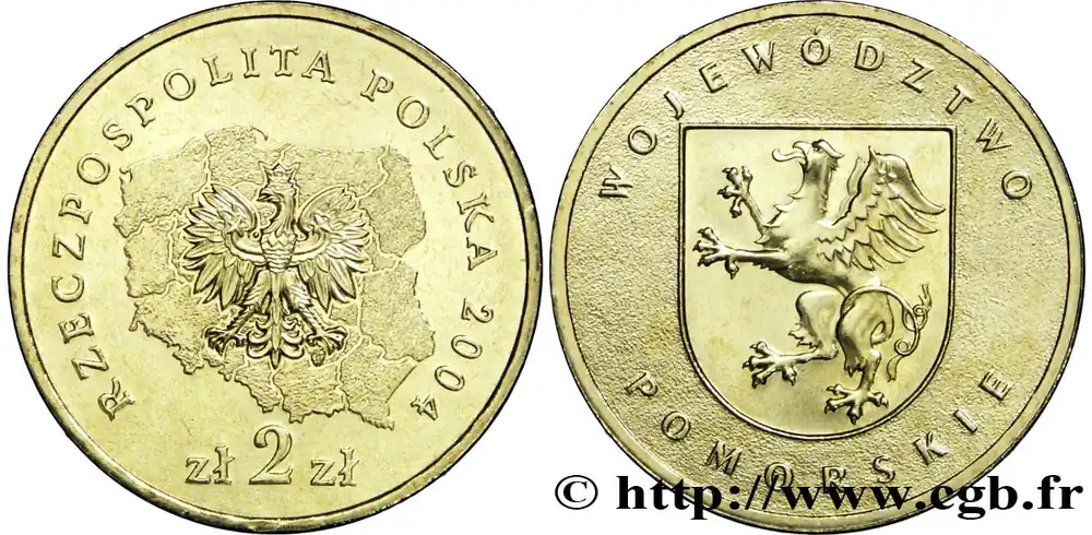 Nouveauté POLOGNE 2 Zlote aigle / écu de la Voïvodie de Poméranie 2004 Varsovie fwo_819196 Monde