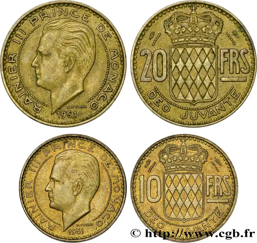 MONACO Lot de deux monnaies 10 et 20 Francs Rainier III 1951 Paris fwo_823417 Monde Satisfait Ou Remboursé
