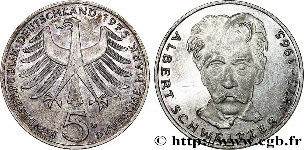 ALLEMAGNE 5 Mark Proof Albert Schweitzer 1975 Karlsruhe fwo_784284 Monde Seulement Aujourd’hui