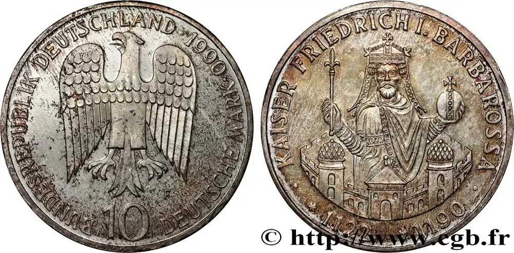 Artisanat ALLEMAGNE 10 Mark 800e anniversaire de la mort de Frédéric Barberousse 1990 Stuttgart fwo_807978 Monde
