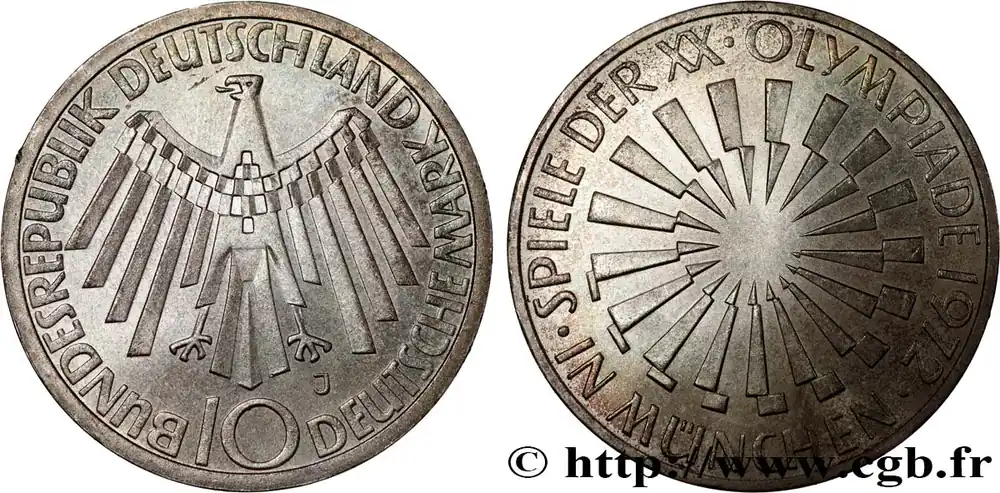ALLEMAGNE 10 Mark XXe J.O. Munich / aigle type “IN MÜNCHEN” 1972 Hambourg fwo_808012 Monde Nouveauté